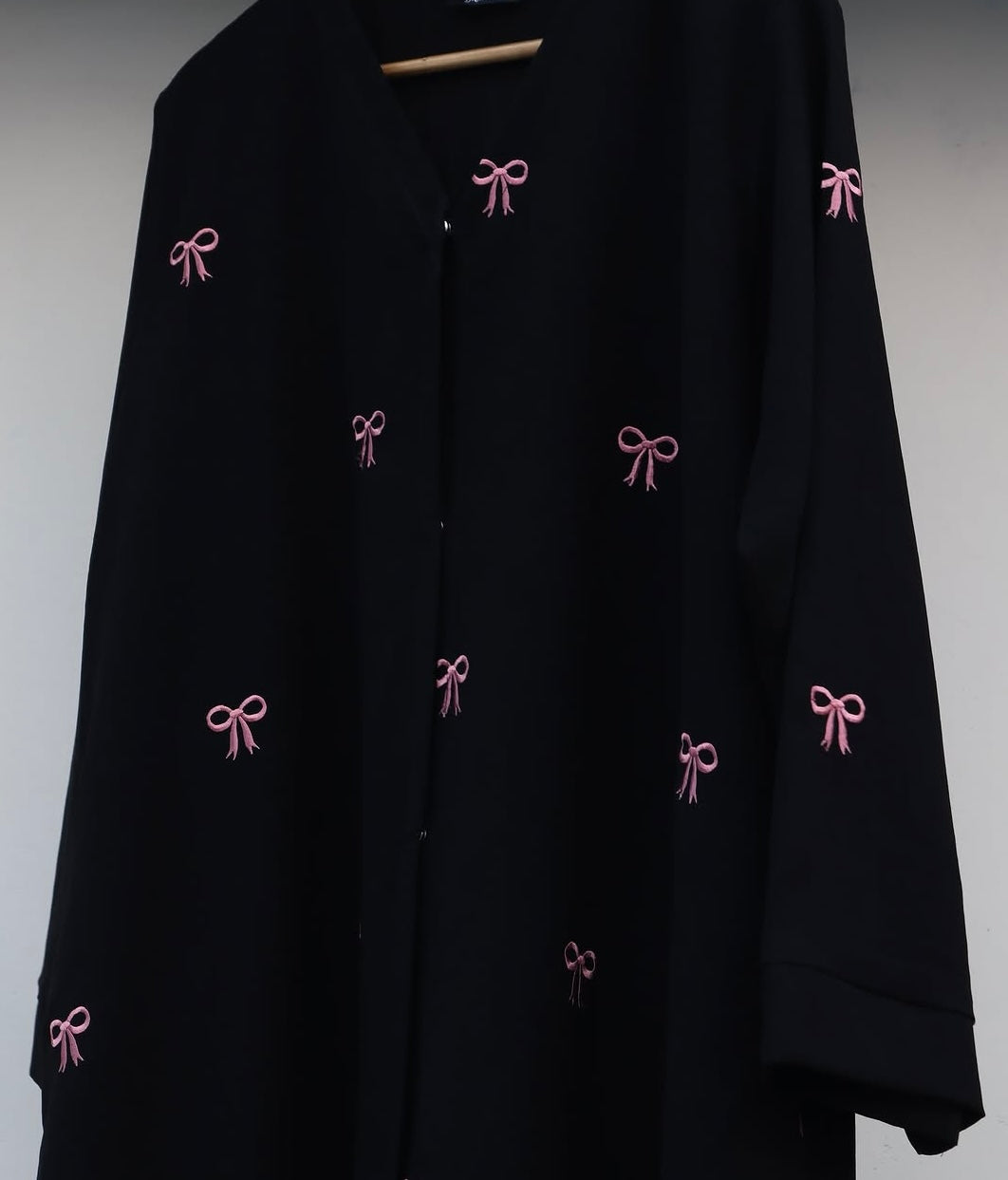 Straight out of Pinterest 💕🎀 Want to up your modest game with the viral bow Abaya? It is an embroidered black Abaya made from high quality nada that showcases pink bow all over. Get it now to slay with a modern touch