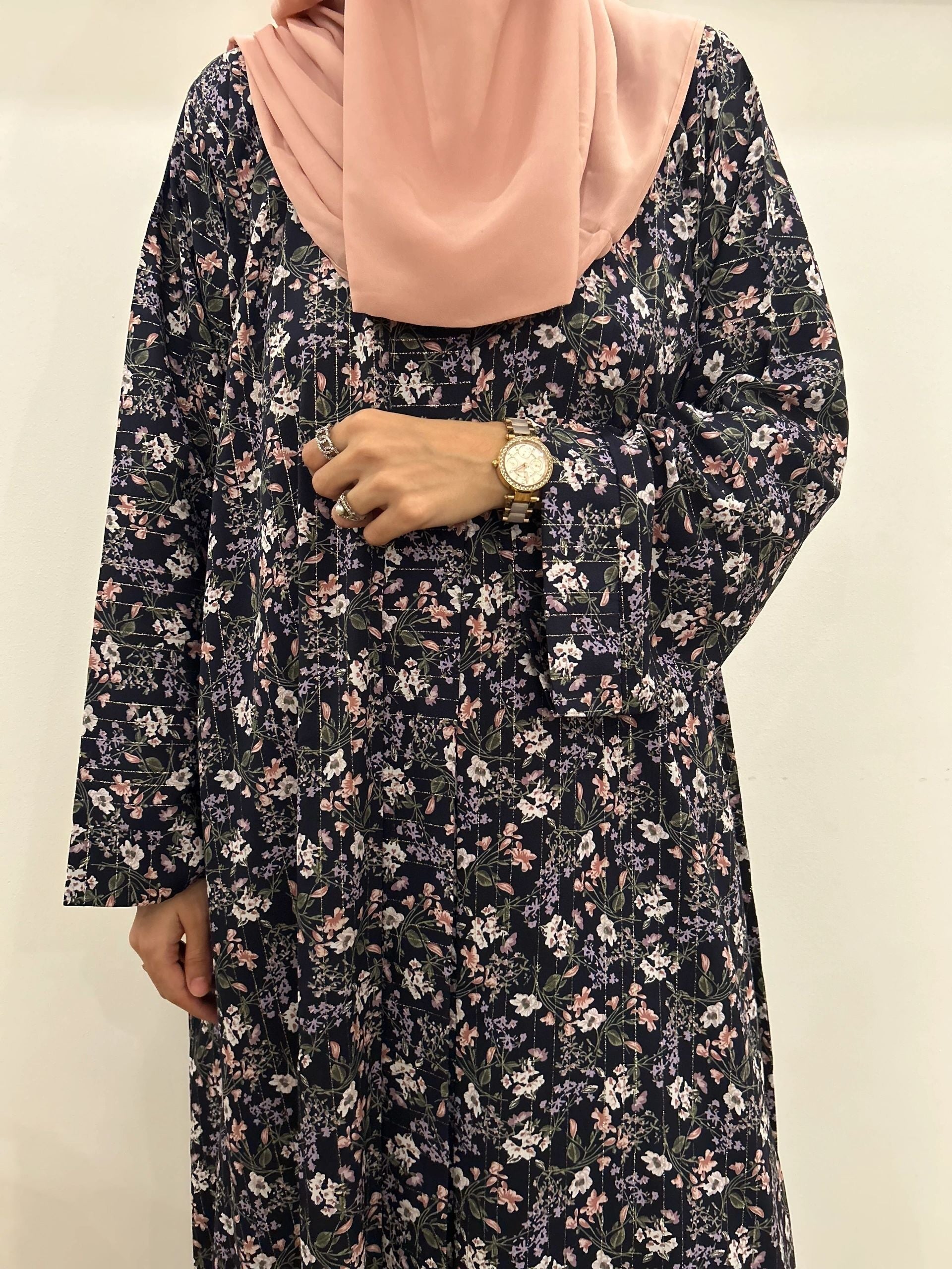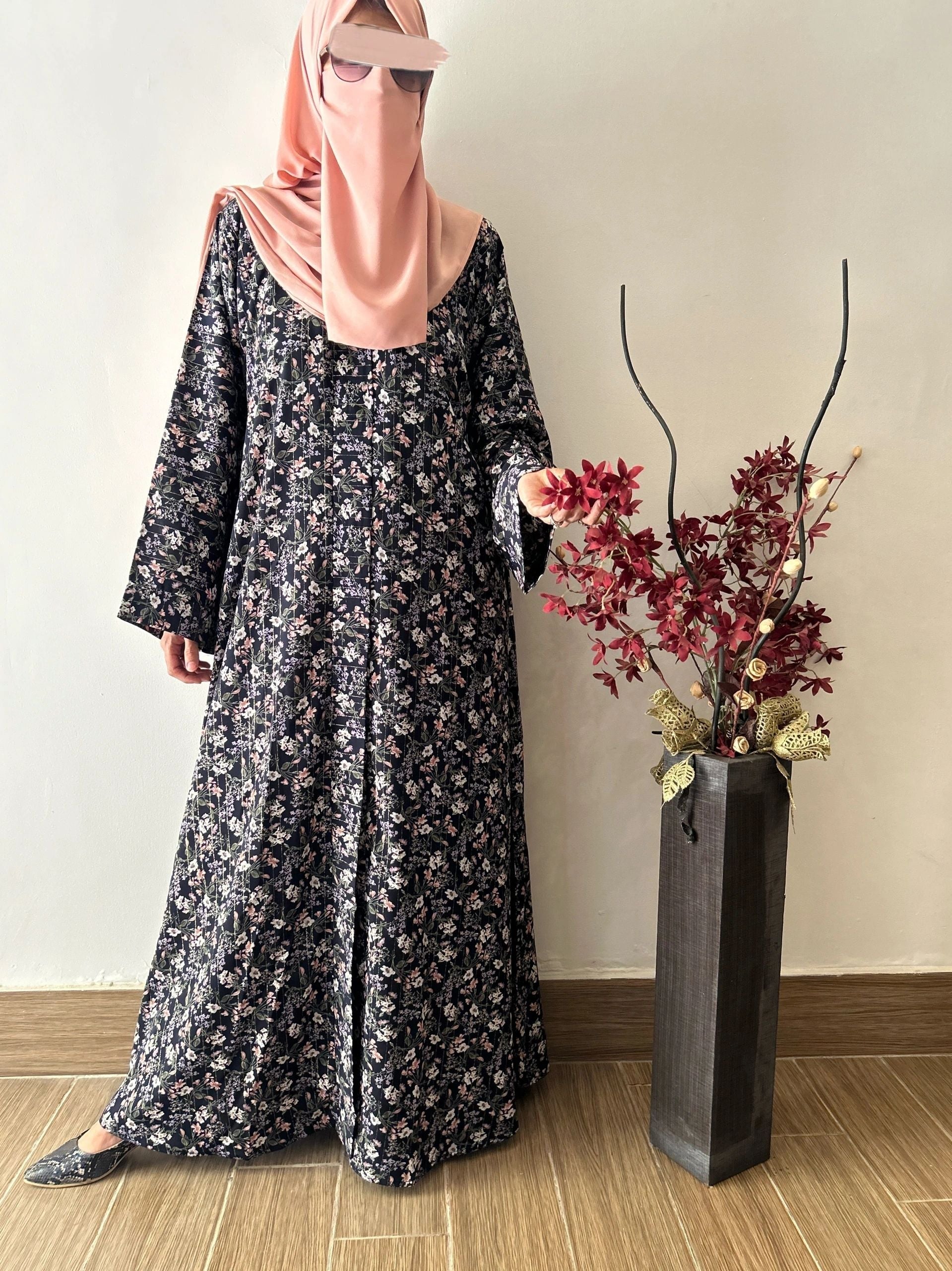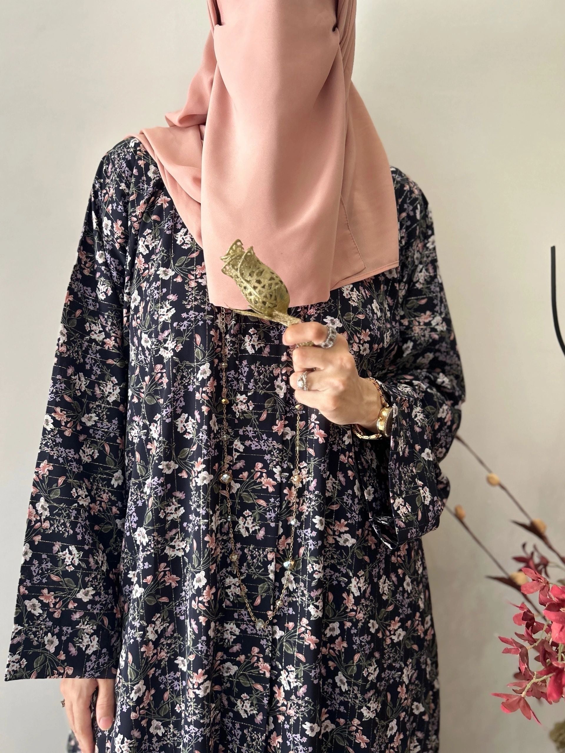 A beautiful abaya with stunning florals⚜️ A printed abaya design with glitter detailing ❤️ This black abaya with flowers all over dazzles like its name.