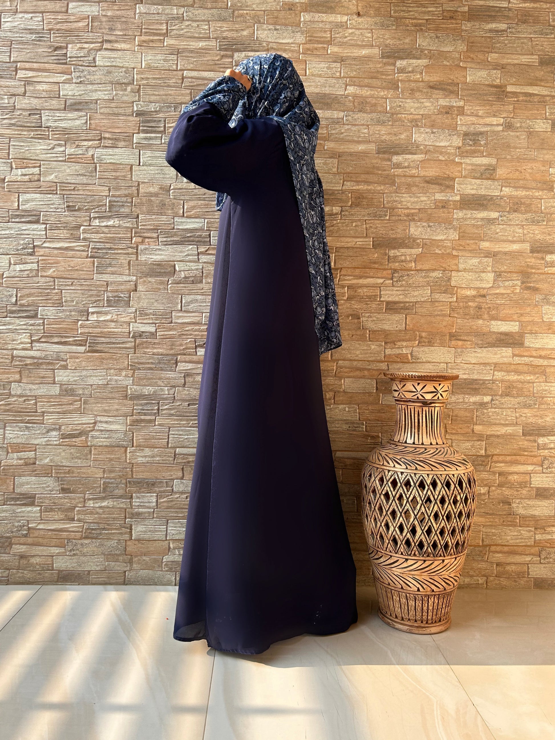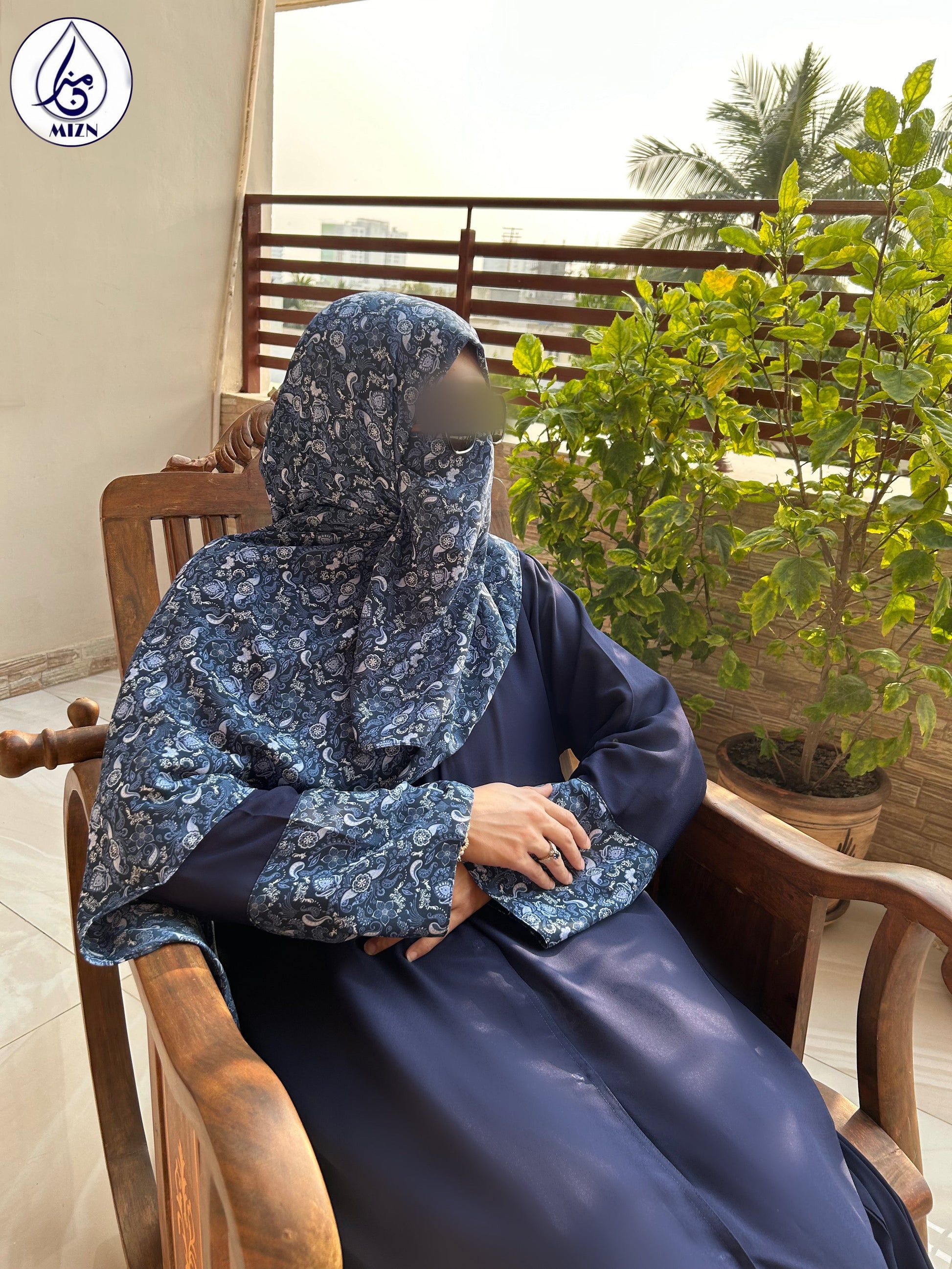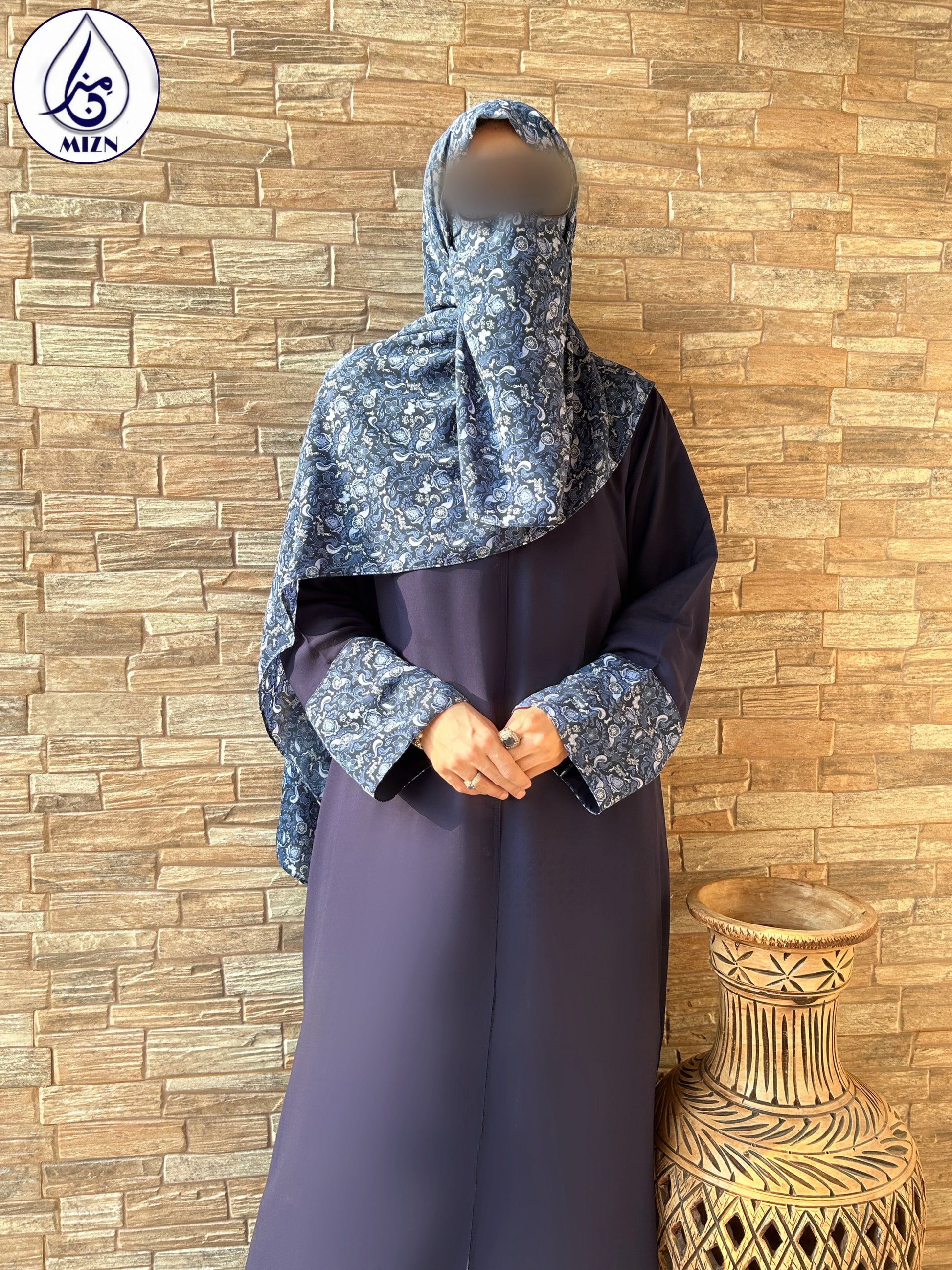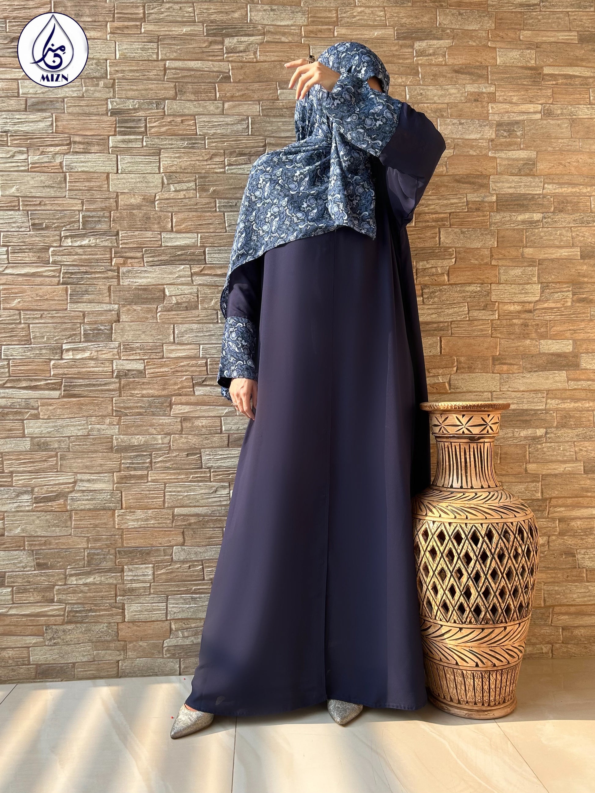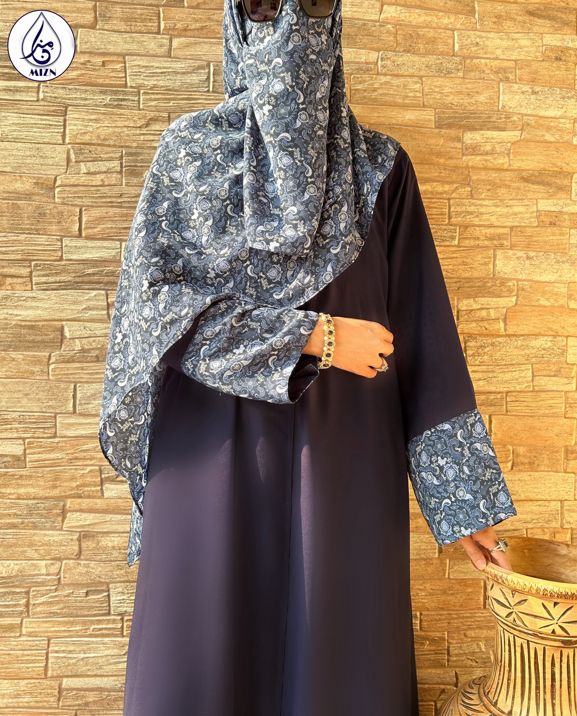 Another blue abaya as we love blue 💙 A modern abaya style with printed hijab. This abaya is simple yet elegant for women who love minimalism.