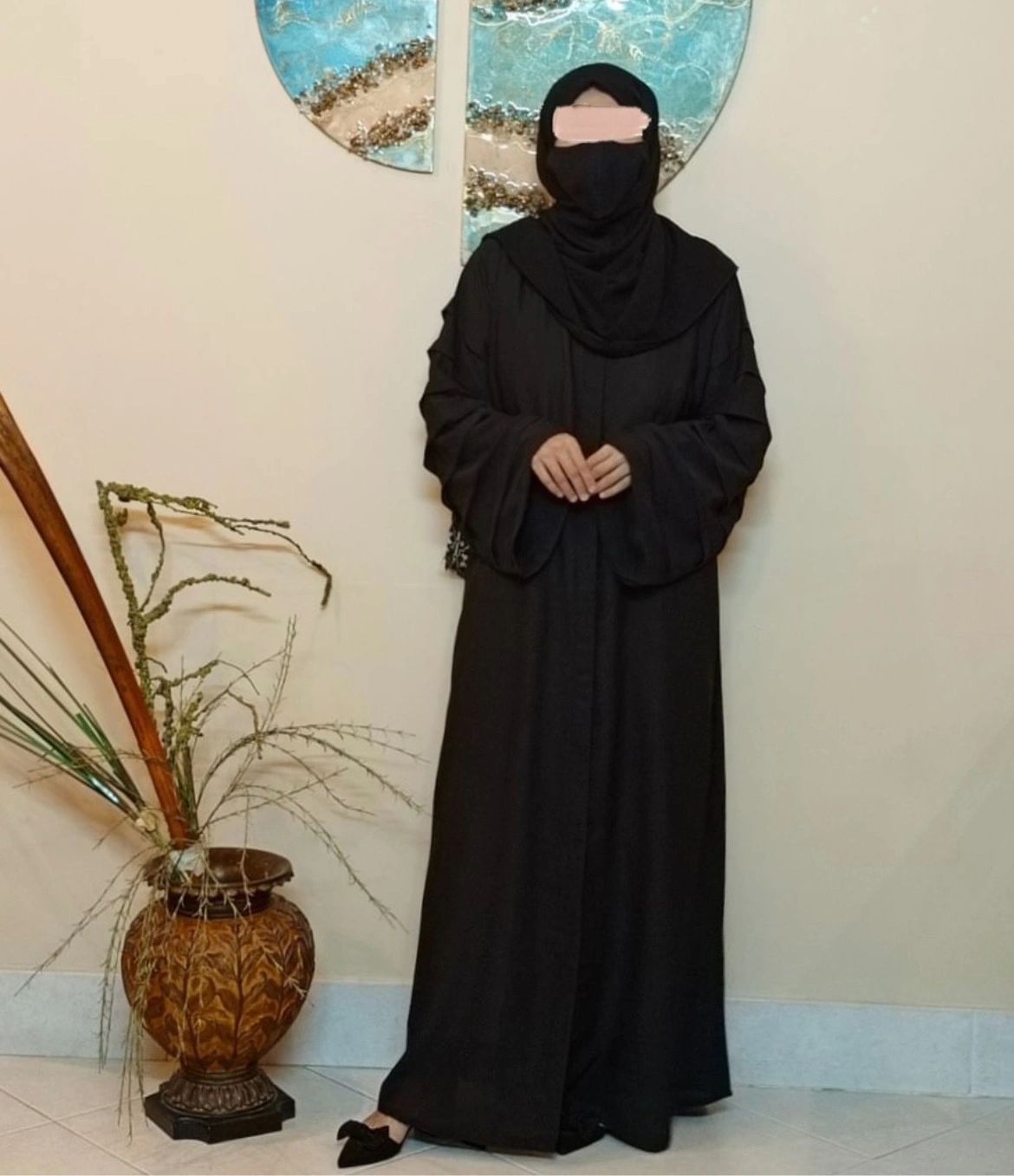 A weaved abaya with ethereal sleeves. The layered sleeves gives this abaya design wings