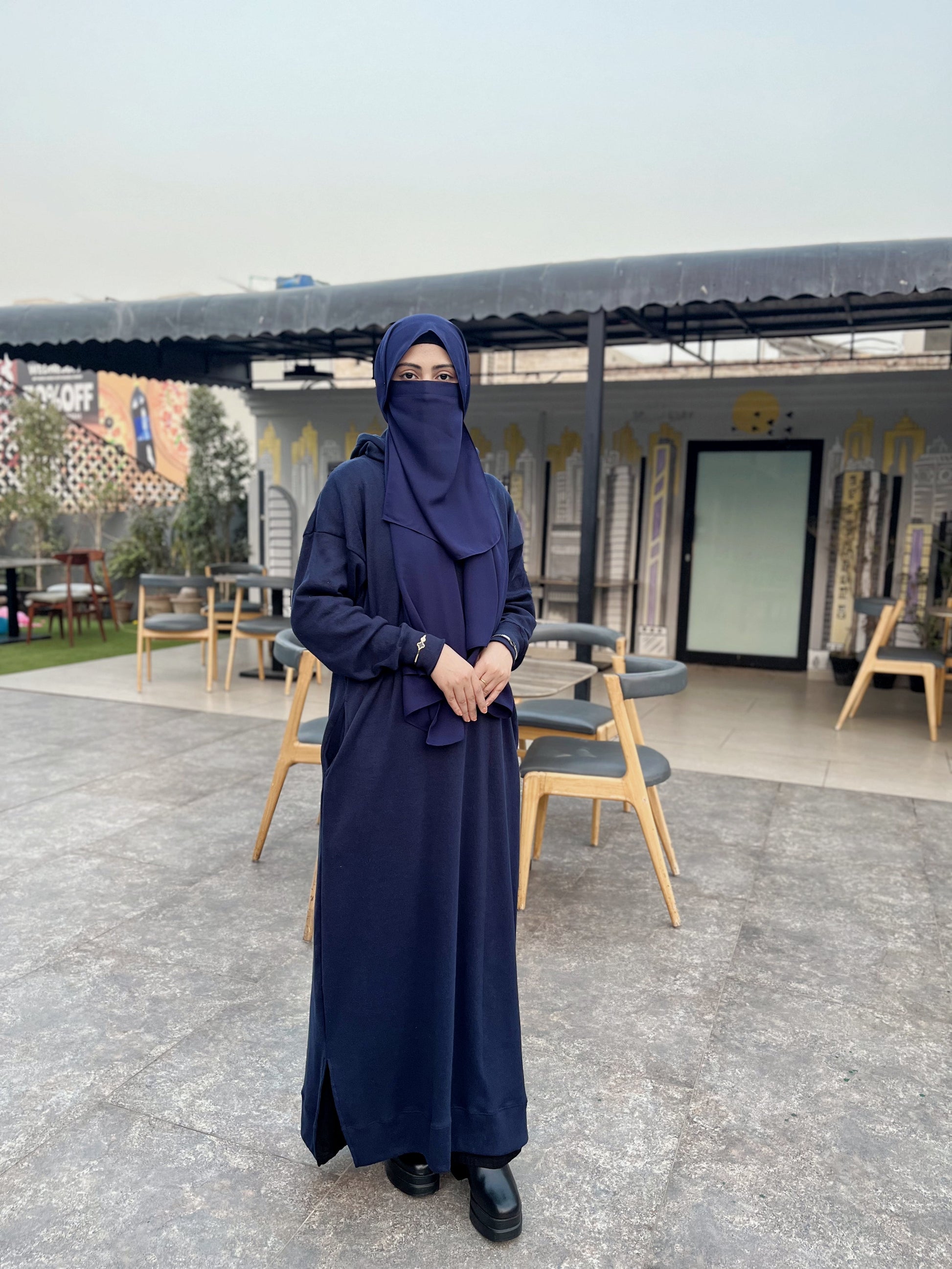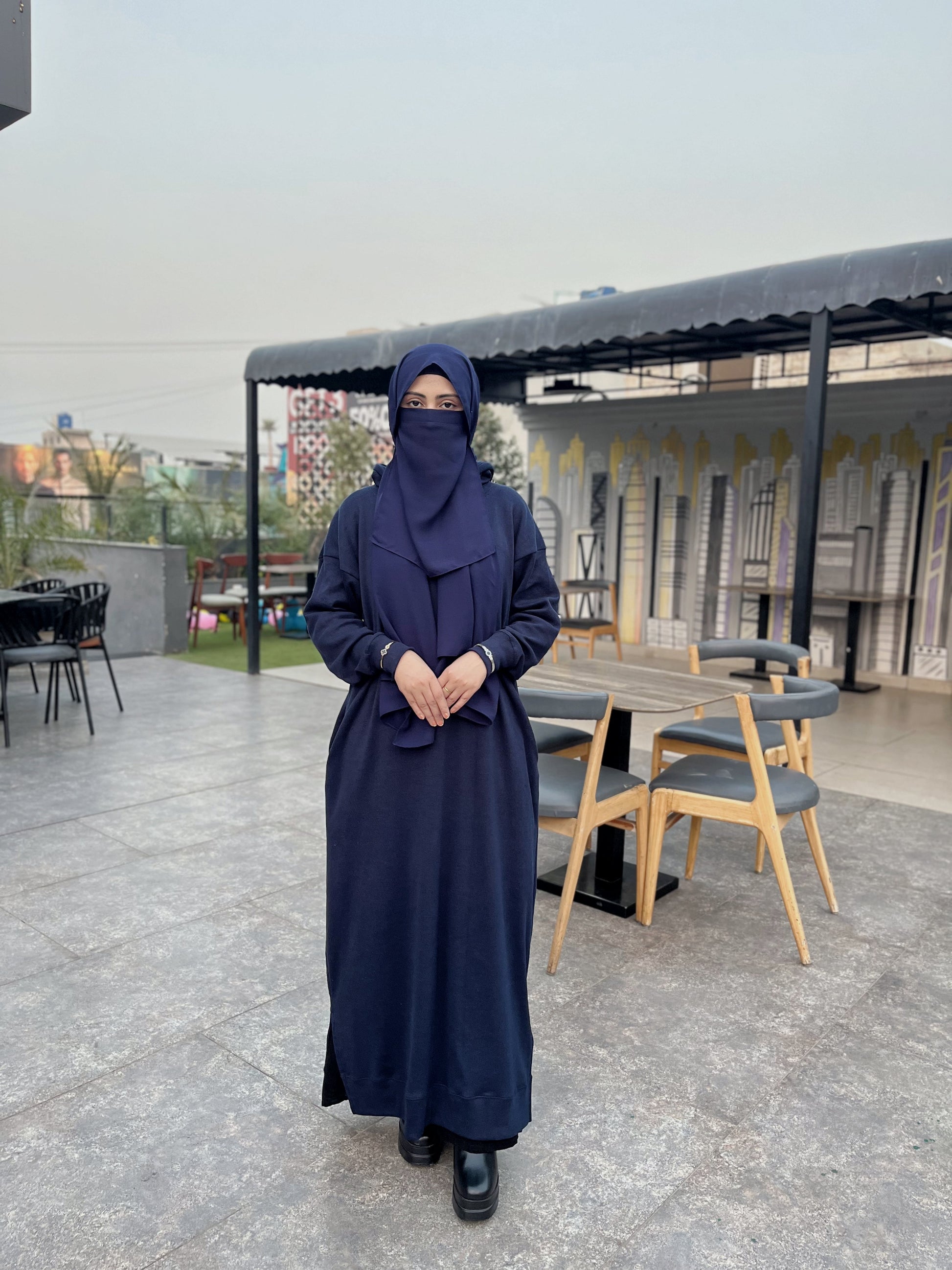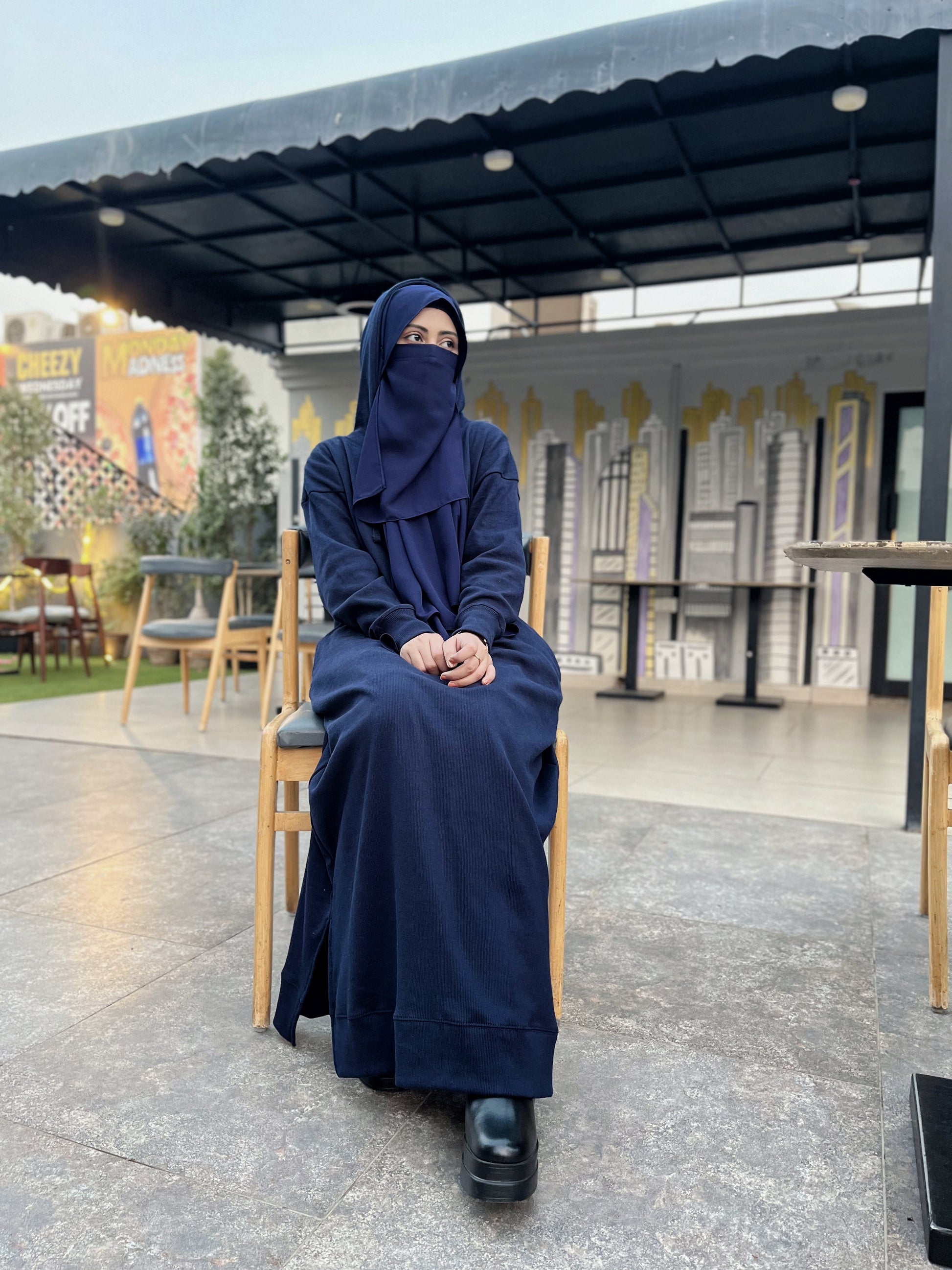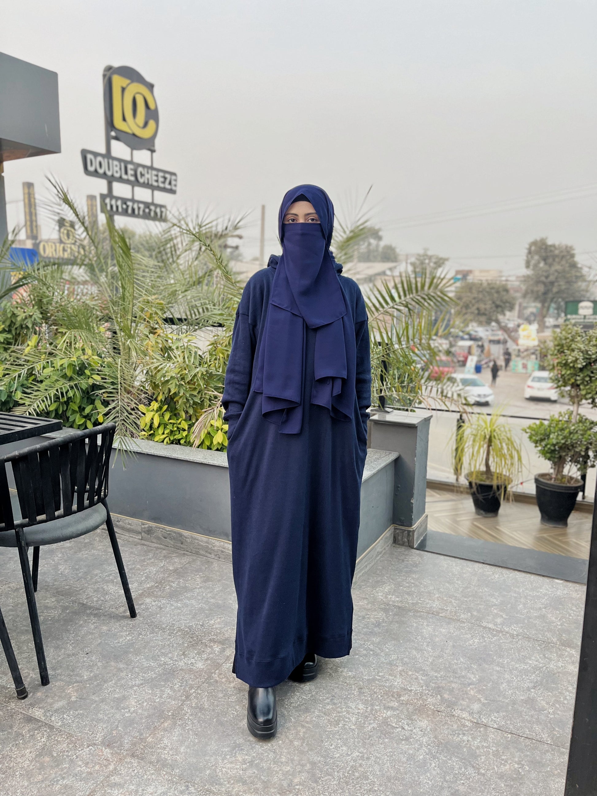 The abaya has a modest fit, side pockets to hold your belongings and cool hoodie to complete the look