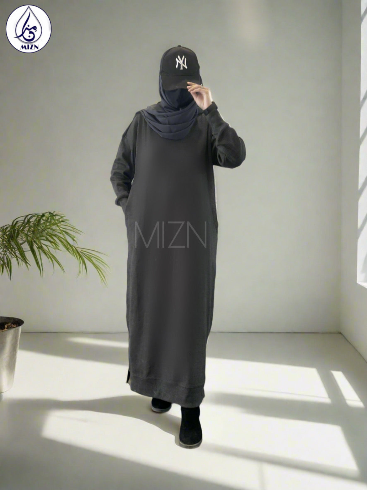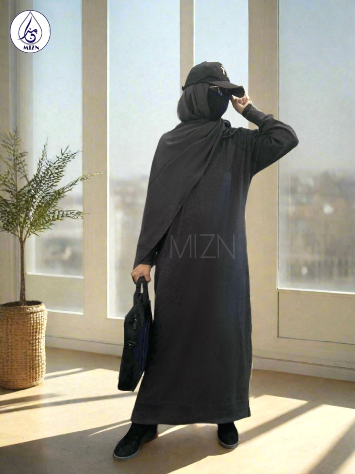 The abaya has a modest fit, side pockets to hold your belongings and cool hoodie to complete the look